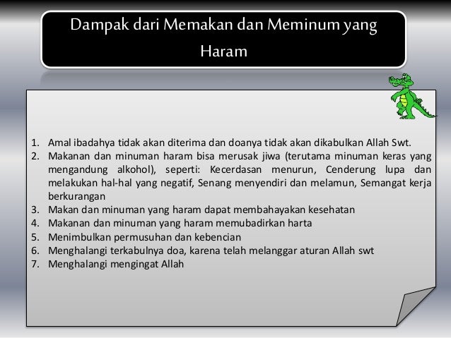 syara’ pasti ada faidahnya dan mendapat pahala. MakananMinumanHaram